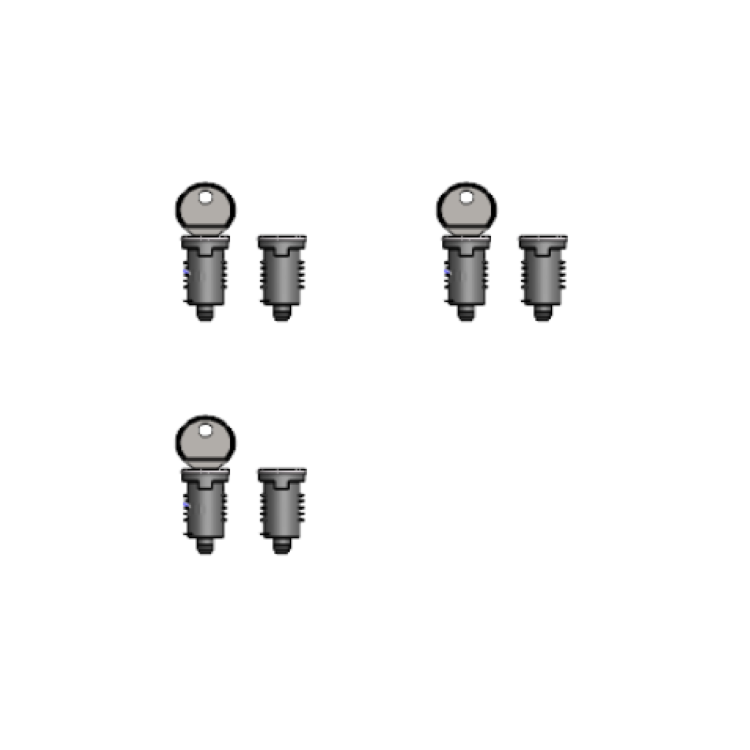 Locks for Rhino Kammbars, these fit both the Kamm Fleet and Kamm Pro roof bars. They are a drop in replacement to the standard plugs that come with the bars. This pack contains 6 locks with 3 keys and is enough for a 3 bar system.