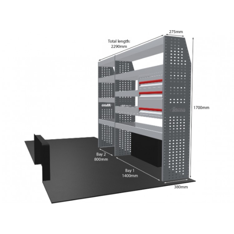 2 bay internal van racking shelf and drawer system with bespoke fixings