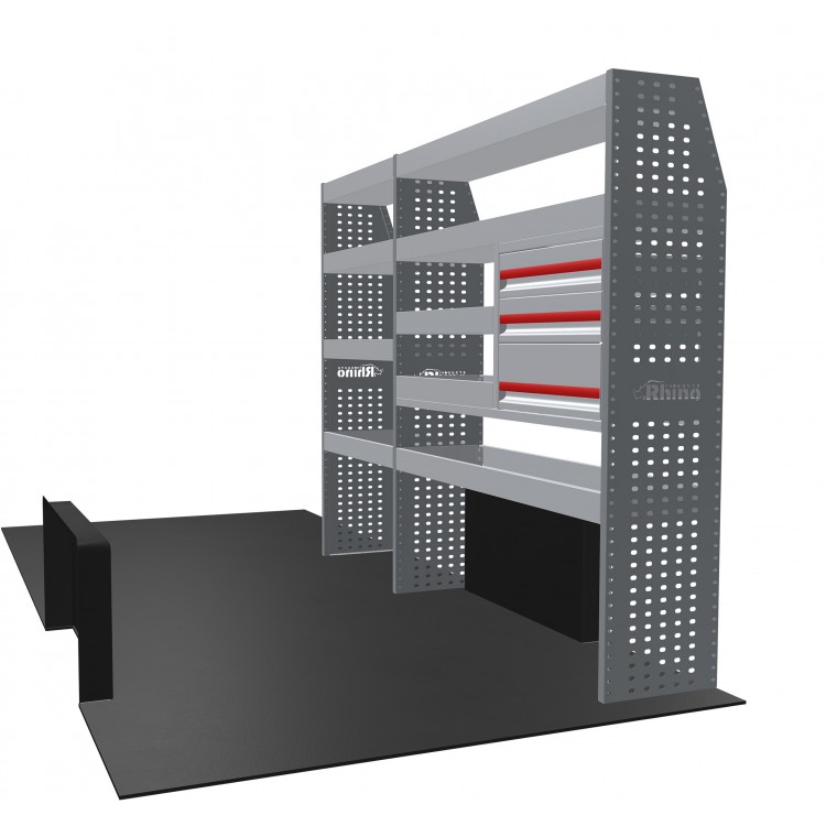 Double Offside (Drivers Side) Racking unit - 2 bay(s), 8 shelves with 600mm wide drawer unit.