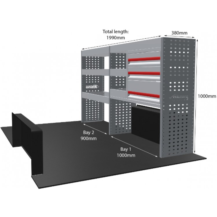 2 bay internal van racking shelf and drawer system with bespoke fixings