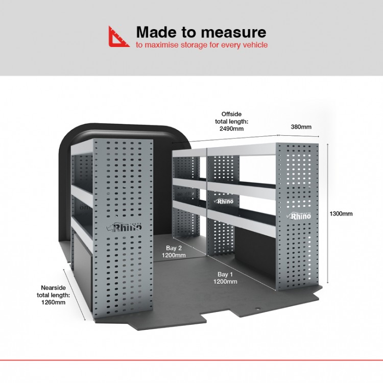 - Made to measure to maximise storage for your van – the height and length of the racking unit is carefully designed to maximise the storage potential of each vehicle's cargo area.