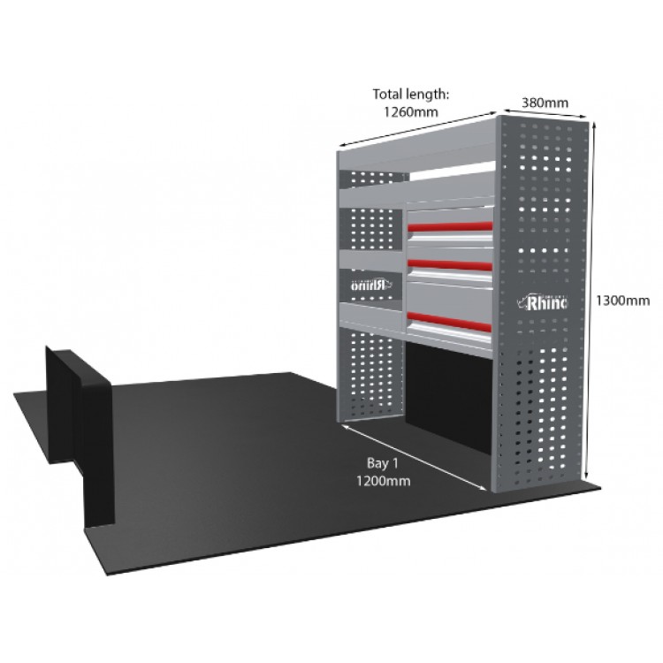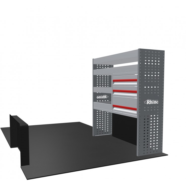 Double Offside (Drivers Side) Racking unit - 1 bay(s), 3 shelves with 600mm wide drawer unit.