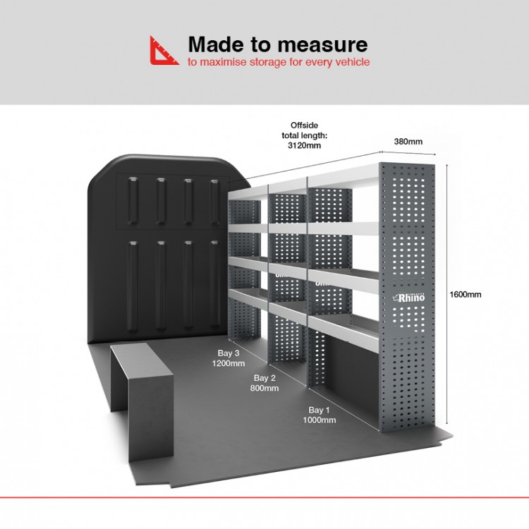 - Made to measure to maximise storage for your van – the height and length of the racking unit is carefully designed to maximise the storage potential of each vehicle's cargo area.
