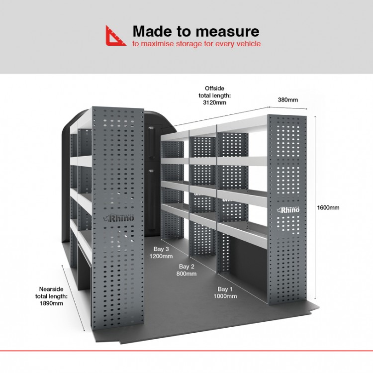 - Made to measure to maximise storage for your van – the height and length of the racking unit is carefully designed to maximise the storage potential of each vehicle's cargo area.