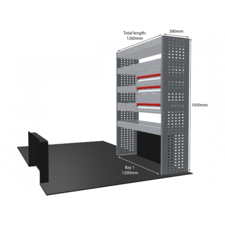 1 bay internal van racking shelf and drawer system with bespoke fixings